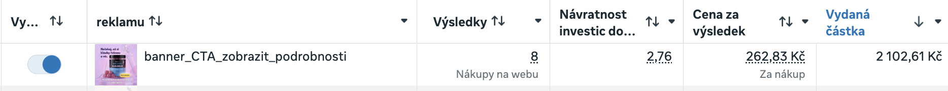 V Království Zdraví takhle během dvou měsíců projeli desítky hypotéz, které bychom jinak nikdy netestovali, protože by to bylo příliš drahé na grafickou produkci. Většina prohrála a dala nám cenné „víme, co nefunguje". Pár vyhrálo a posunulo ROAS z 1,8 na 2,76.